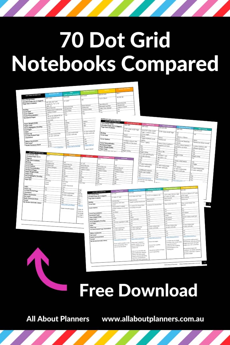 Use this detailed comparison table to quickly find the perfect dot grid notebook for you